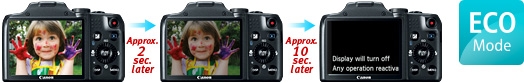 The PowerShot SX280 HS takes energy conservation to the next level with ECO Mode, which provides more shots per single charge through LCD monitor and camera power management. ECO Mode can be activated for easy power preservation when an outlet is unavailable or the moment is too exciting to put the camera down. ECO Mode quickly wakes the camera from sleep when a button is pressed. With ECO Mode activated to conserve power, you can even stay connected for longer with the built-in Wi-Fi feature on the PowerShot SX280 HS. When the fun with family and friends runs late into the night, you can be assured your camera can keep up.