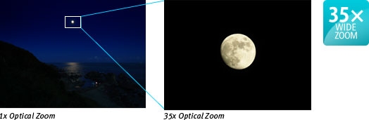 Canon's high powered 35x Wide-Angle Optical Zoom (24-840mm) with Optical Image Stabilizer delivers magnificent images whether you are up close or far away.