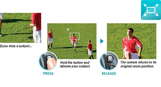 Zoom Framing Assist button aids in tracking and capturing subjects during super telephoto photography.
