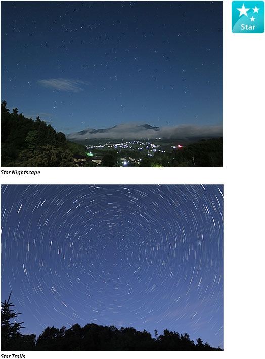Movie Digest & Hybrid Auto Automatically selects shooting settings for optimal quality and records a video clip every time you capture a still image. One day's worth of clips are then combined into a single video.