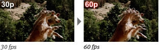 Videos: Full HD 1920 x 1080: 60 fps, 30 fps (29.97) HD 1280 x 720: 30 fps (29.97) Miniature Effect HD 1280 x 720: 6 fps, 3 fps, 1.5 fps Miniature Effect 640 x 480: 6 fps / 3 fps / 1.5 fps Super Slow Motion Movie 640 x 480: 120 fps Super Slow Motion Movie 320 x 240: 240 fps 640 x 480: 30 fps (29.97) Digest Movie HD 1280 x 720: 30 fps (29.97)