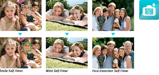Smart Shutter The camera automatically takes the photo when people smile, wink, or get into frame.