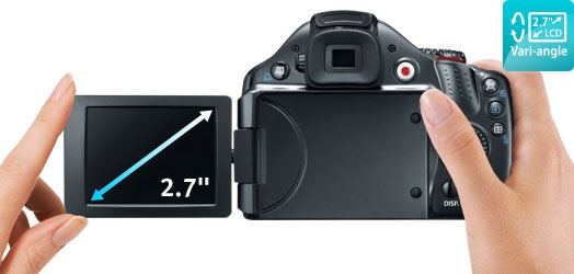 2.7-inch wide Vari-Angle LCD enables easy viewing from any angle.