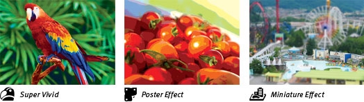Creative Filters This setting provides easy access to special filter effects and scene modes, such as Toy Camera Effect, Poster Effect, Monochrome and more.