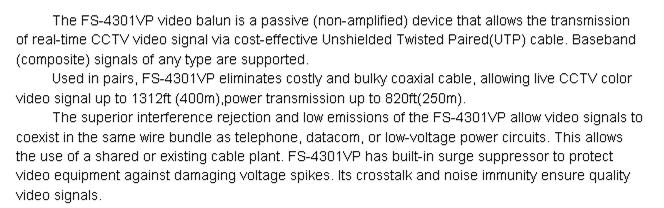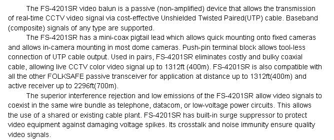 Folksafe FS-4301VP 1-CH Passive Video & Power Balun (Transmitter + Receiver), 12V/24V 1-CH Passive Video & Power Balun ( Transmitter + Receiver ), 12V/24V