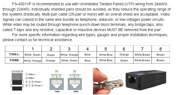 One Unshielded Twisted Pair (for each video signal) 24-16 AWG (0.5-1.31mm) |