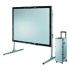 The frame and legs are constructed of steady aluminium leg and feature easy release latches for simple, quick set up and tear down of the screen. Front and rear projection screen surfaces can be interchanged at any time. Trainers, presenters, producers, everyone who takes a show on the road will appreciate this fast-folding projector screen with many advantages.