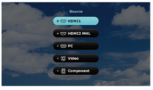 Computer in (D-sub 15pin) x 1 HDMI x 2 MHL x 1 (shared with HDMI2) Composite Video in (RCA) x 1 Component Video in x 1 Audio in (Mini Jack) x 1 Audio L/R in (RCA) x 1 Audio out (Mini Jack) x 1 Chamber Speaker 10W x 1 USB (Type A) x1 (for 1.5V power supply) USB (Type Mini B) x1 (for service) RS232 (DB-9pin) x 1 DC 12V Trigger x 1 |