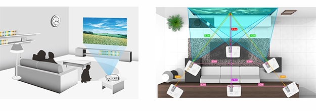 The horizontal, or side-to-side, keystone correction feature comes in handy when you have a hard time clearing up your living room table or finding an ideal placement for the W1070+. By enabling you to correct the trapezoid effect, which occurs when a projector is placed off center, this feature offers you the flexibility you need to turn unused corners or space, such as the side table, into the perfect place for the W1070+.