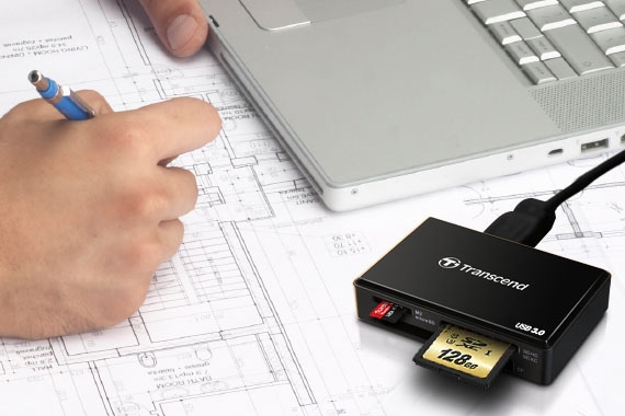 Transcend TS-RDF5K Portable USB3.0 Card Reader - Black - Supports SDHC UHS-I, SDXC UHS-I, MicroSDHC UHS-I, MicroSDXC UHS-I