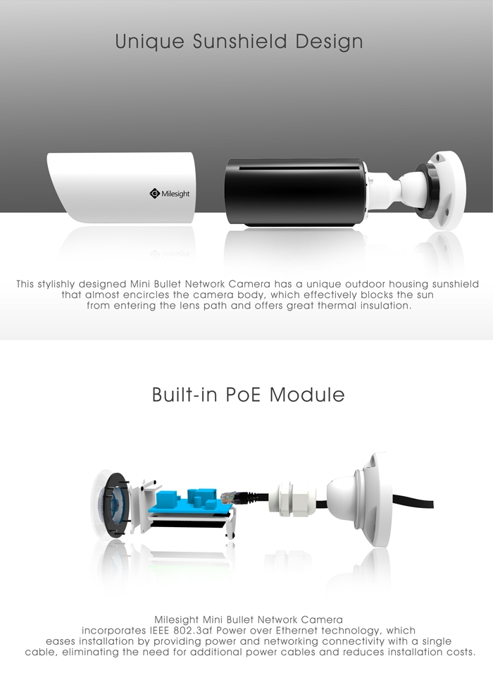 Motion detection, Privacy mask, Backlight compensation, 3D Noise Reduction, ROI |