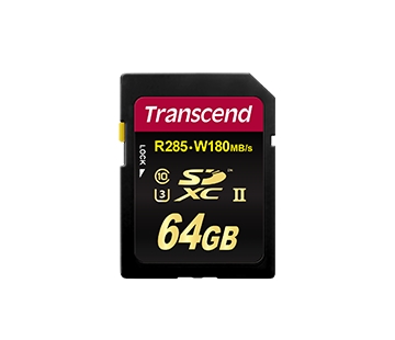 Transcend 64GB SDHC UHS-II Card - Ultimate, Read 285MB/s, Write 180MB/s64GBTS64GSD2U3 SDXC/SDHC UHS-II U3 (R285, W180MB/s)