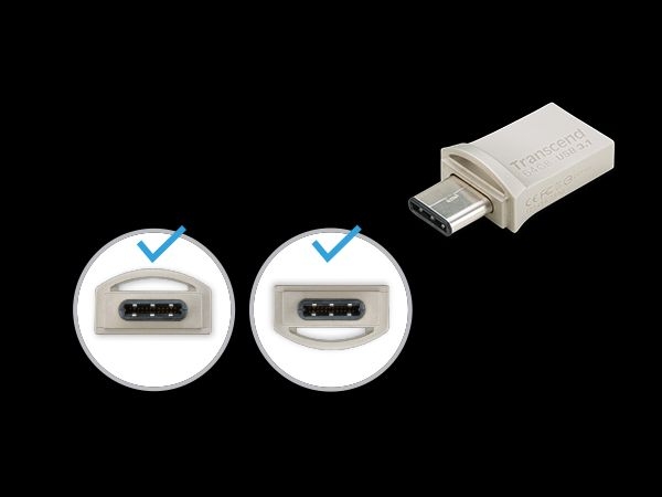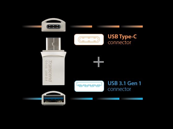 Meeting the new generation of USB Type-C technology, the JetFlash 890 USB 3.1 OTG Flash Drive features a dual connector - a reversible USB Type-C connector and a regular USB 3.1 (Gen 1) connector* - that is designed to transfer and back up your photos, music and videos between the latest USB Type-C port equipped devices such as MacBook and your PC, laptops and Mac computers. Plus, with the free-to-download Transcend Elite App, you can easily explore files on the JetFlash 890 and quickly back up all your precious files stored on your MacBook, smartphone and tablet. Dual USB connector, double convenience Thanks to the USB OTG (On-The-Go) technology, the JetFlash 890 combines a regular USB 3.1 (Gen 1) connector and a USB Type-C connector into a USB flash drive, providing you greater portability to transfer precious photos, music, videos and any other digital files between tablets, smartphones, Mac computers, PCs and laptops.