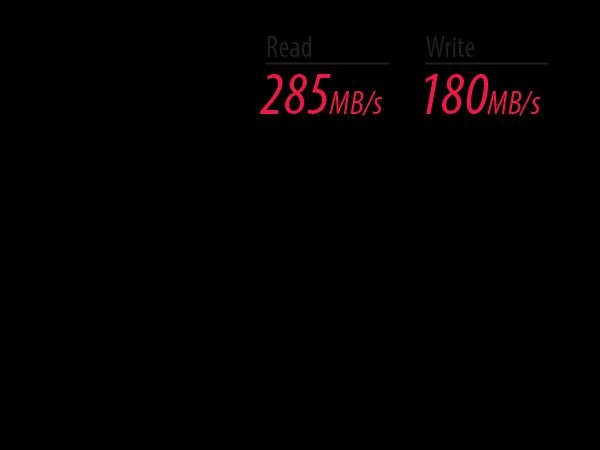 read and write speeds of up to 285MB/s and 180MB/s* respectively, the