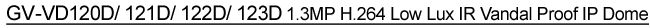 GeoVision GV-VD120D Low Lux IR Vandal Proof IP Dome Camera - 1.3 Megapixel, 1/3" Progressive Scan Low Lux CMOS, Dual Streams From H.264, MJPEG, Up To 30FPS @ 1280x1024, Two-Way Audio - White Models | Model |