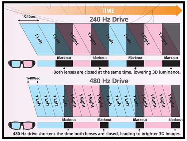 by using a 480Hz Active Shutter system rather than the traditional 240Hz System.