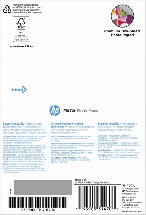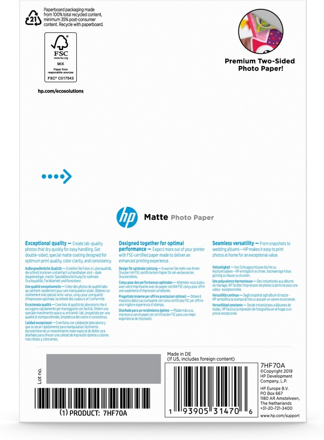 Ideal for inkjet printer and HP Inkjet photo-printing enthusiasts producing bright, colorful, 4 x 6-inch photo projects and two-sided printing.