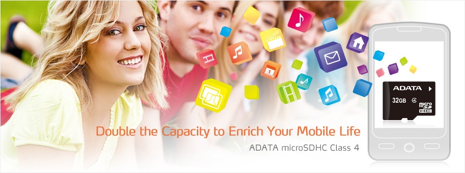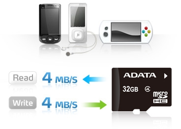 As the demand for digital storage devices continuously grows, ADATA is at the forefront with improved, top-notch memory solutions. Taking the microSD to the next level, ADATA is pleased to introduce the microSDHC (Secure Digital High Capacity), whose new interface enables faster transfer rates and expands upon the previous maximum capacity of 2GB. The ADATA microSDHC Class 4 provides cellular phones even more memory storage for multimedia, business and personal data. The microSDHCs 4 MB/s transfer rate places it as the top choice for micro storage devices and a must-have for your mobile life.