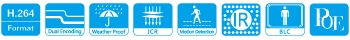 Motion detection, Privacy mask, Backlight compensation, 3D Noise Reduction, ROI |