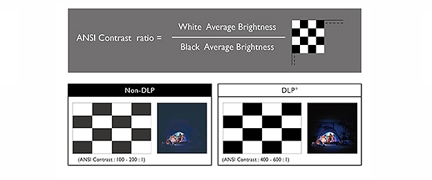 Contrast Ratio (FOFO) : 10000:1 Display Color (ANSI) : 500:1 |