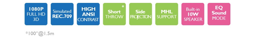 With the W1080ST+, incredible 1080p Full HD home entertainment is just a click away! Featuring cinema color reality picture performance, side projection and short-throw technology, the home video projector gives you the installation and placement flexibility to turns your favorite multimedia content into 100 of cinematic enjoyment from only 1.5 meters away so you can turn your living room into a cinema without worrying about having enough room or wiring and remodeling troubles.