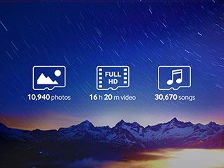 Save up to 10,940 photos1, up to 16 hours 20 minutes of Full HD video2 or up to 30,670 songs3.* Download more media files and apps to your smartphone or tablet. And know you’ve got plenty of space.
