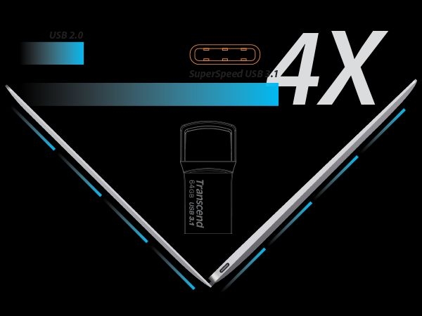 Unparalleled transfer speeds A USB connection design makes you worry-free from Wi-Fi, Bluetooth and 3G/4G internet connection. Equipped with SuperSpeed USB 3.1 (Gen 1), the JetFlash 890 performs the incredible transfer speeds of up to 90MB/s, giving you a maximum of 4x faster speed than USB 2.0 interface.