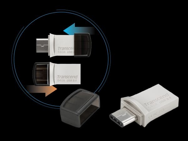 Meeting the new generation of USB Type-C technology, the JetFlash 890 USB 3.1 OTG Flash Drive features a dual connector - a reversible USB Type-C connector and a regular USB 3.1 (Gen 1) connector* - that is designed to transfer and back up your photos, music and videos between the latest USB Type-C port equipped devices such as MacBook and your PC, laptops and Mac computers. Plus, with the free-to-download Transcend Elite App, you can easily explore files on the JetFlash 890 and quickly back up all your precious files stored on your MacBook, smartphone and tablet. Dual USB connector, double convenience Thanks to the USB OTG (On-The-Go) technology, the JetFlash 890 combines a regular USB 3.1 (Gen 1) connector and a USB Type-C connector into a USB flash drive, providing you greater portability to transfer precious photos, music, videos and any other digital files between tablets, smartphones, Mac computers, PCs and laptops.