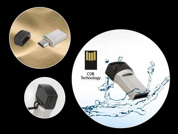 Because it is made from a COB (Chip On Board) technique and assembled with a metallic casing, the JetFlash 890 is completely resistant to dust and water, yet extraordinarily lightweight.