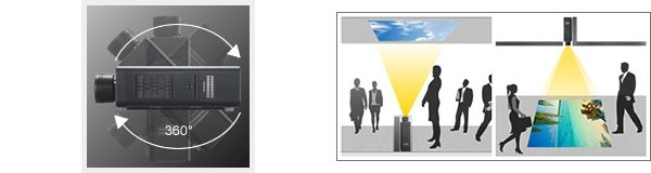 This function automatically corrects the brightness fluctuations that occur over time in the individual projectors of a multi-screen system. A maximum of eight projectors can be controlled by connecting each other via a hub, and this can be increased to a maximum of 2,048 projectors by using "Multi Projector Monitoring & Control Software Ver. 2. Portrait Mode Capability (optional)5