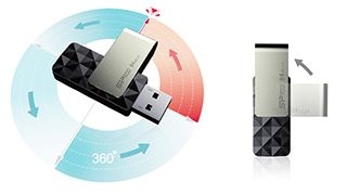 Swivel for Easily Use and Store Blaze B30 incorporates the 360 degree capless swivel design with the stainless metal structure. This allows users to use and store with just a thumb push. Blaze B30 also enhances its durability of the swivel axis with the Four-way positioning rotating technology which avoids any damages or debris on the USB connector from loose axis.