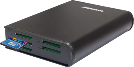 - Five CF cards are connected to an integrated Hardware Port Multiplier HPM-XU (AD5HPMREU) inside the unit
