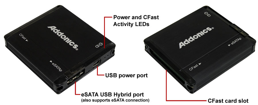 - Reads and writes to any CFast card through eSATA