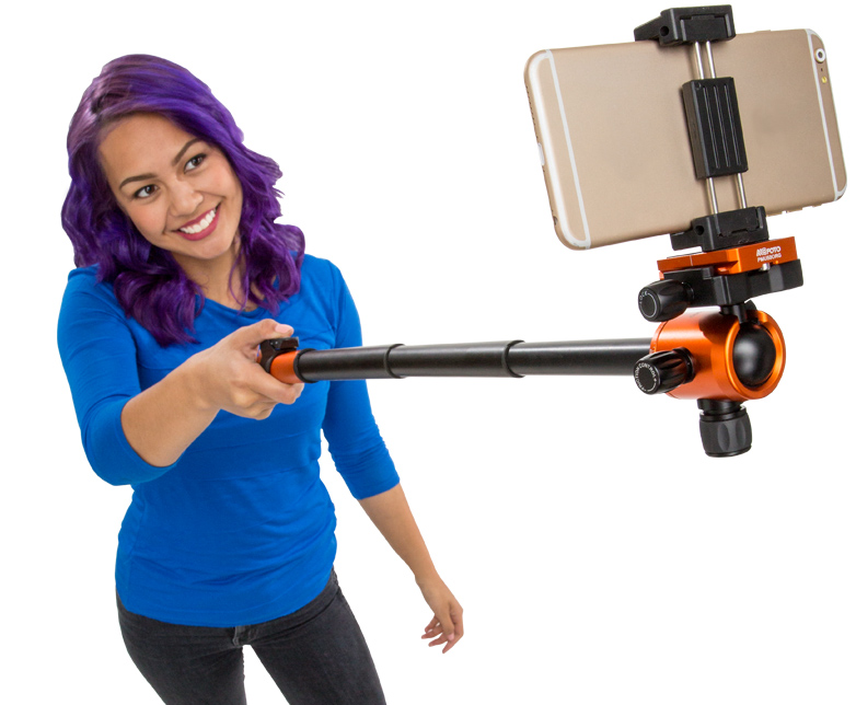 telescoping center column converts to a Selfie Stick with included smartphone