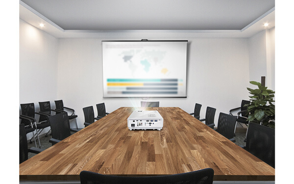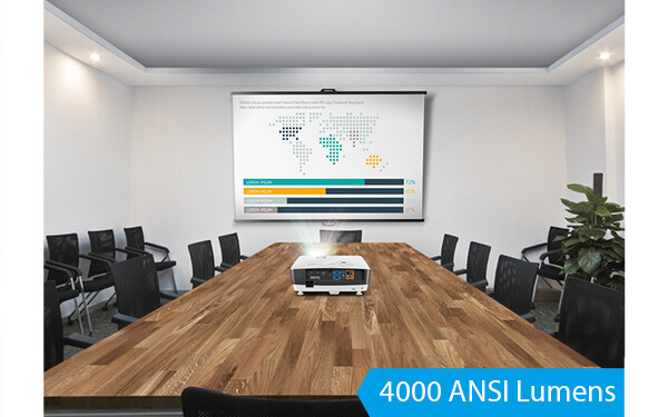 4,000 lumens of high brightness enable comfortable lights-on presentations to promote discussion, collaboration, and note-taking in larger meeting rooms with bright lights accommodating up to 20 participants. The high luminance lets even participants seated furthermost clearly see the slides and boosts picture quality with vibrant color for pictures and videos as well as crisp text and fine details.