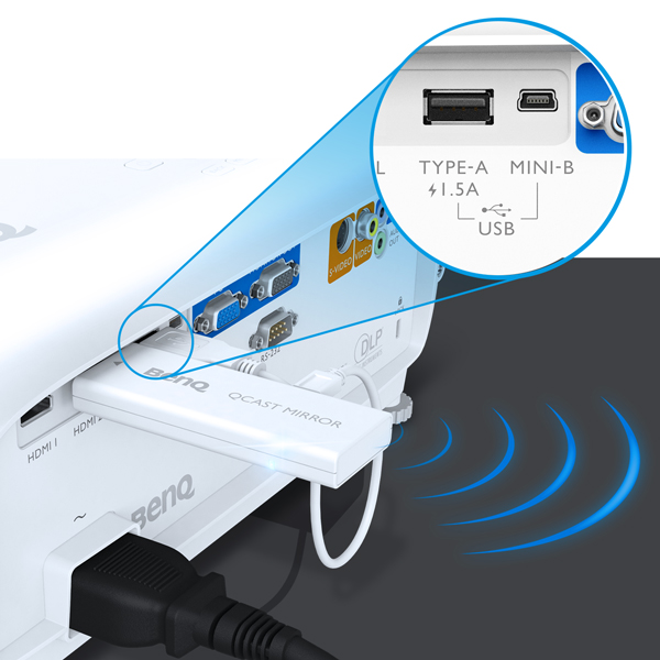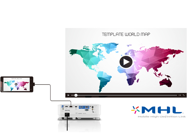 MHL connectivity lets Android smart devices mirror documents, photos, videos, or any other content via MHL cable to share ideas and presentations, while charging the mobile device at the same time. In addition, MHL powers compatible wireless dongles such as QCast for wireless presentations without additional USB power cables.