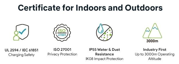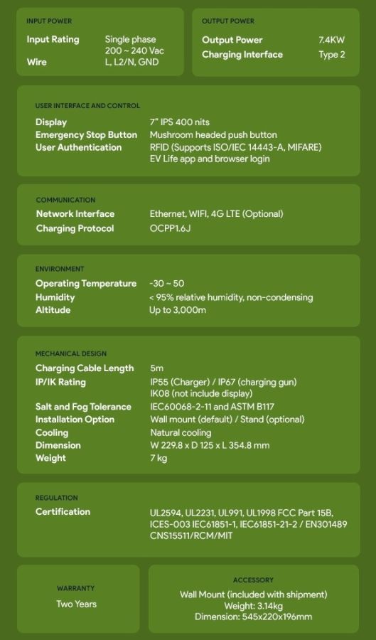 IP/IK Rating: IP55 (Charger) / IP67 (charging gun), IK08 (not include display)