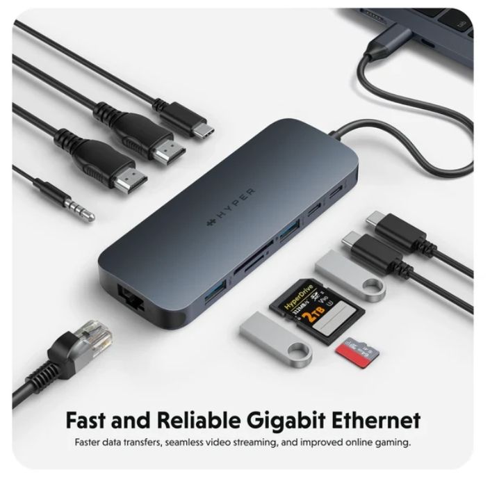 Introducing the HyperDrive® Next 11 Port USB-C Hub - the ultimate connectivity solution for creators, editors, photographers, and more. With dual 4K60Hz monitor support for PC and Chromebook, 11 ultra-fast ports, and lightning-fast data transfers, unleash your creative potential anywhere. Experience 2X faster file transfers using the 10Gbps USB ports and 3X faster photo and video transfers with microSD and SD 4.0. Benefit from 40% more power with a PD 3.1 140W power pass-through port, ensuring efficient charging. Maximize productivity with the HyperDrive® Next 11 Port Dual 4K USB-C Hub.