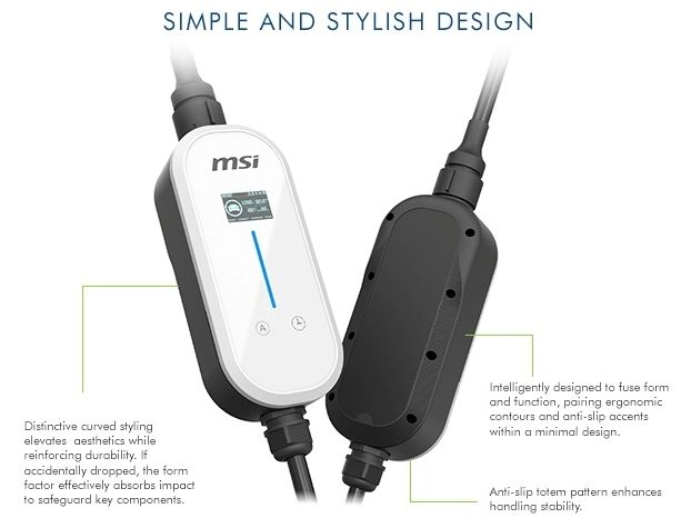 MSI EV Charger EZGO, White - 10A+15A+Home kit, Single Phase, 230V, 1PH, 2.3KW & 3.4KW, 5M Type 2 Charging gun, 1.8`LCD, IP66, 1.5T, Bluetooth