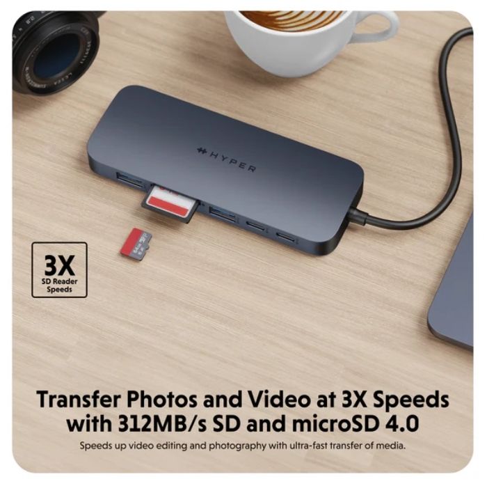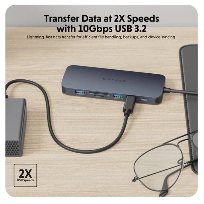 Introducing the HyperDrive® Next 11 Port USB-C Hub - the ultimate connectivity solution for creators, editors, photographers, and more. With dual 4K60Hz monitor support for PC and Chromebook, 11 ultra-fast ports, and lightning-fast data transfers, unleash your creative potential anywhere. Experience 2X faster file transfers using the 10Gbps USB ports and 3X faster photo and video transfers with microSD and SD 4.0. Benefit from 40% more power with a PD 3.1 140W power pass-through port, ensuring efficient charging. Maximize productivity with the HyperDrive® Next 11 Port Dual 4K USB-C Hub.