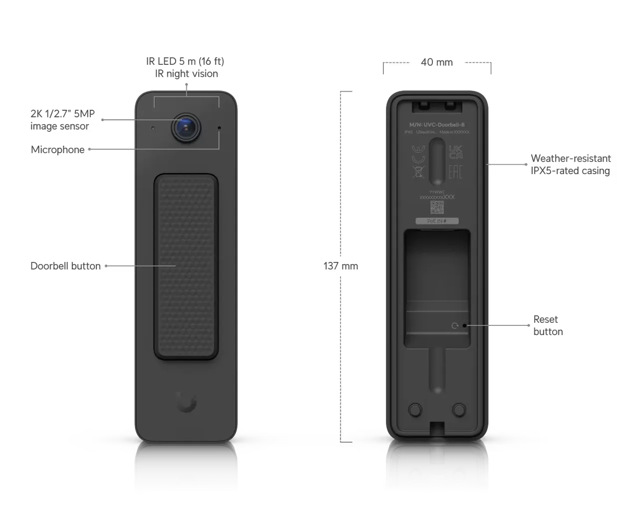 Doorbell Lite features a camera with a 2K 1/2.7 5MP Image Sensor and IR LED with 5m IR Night Vision.